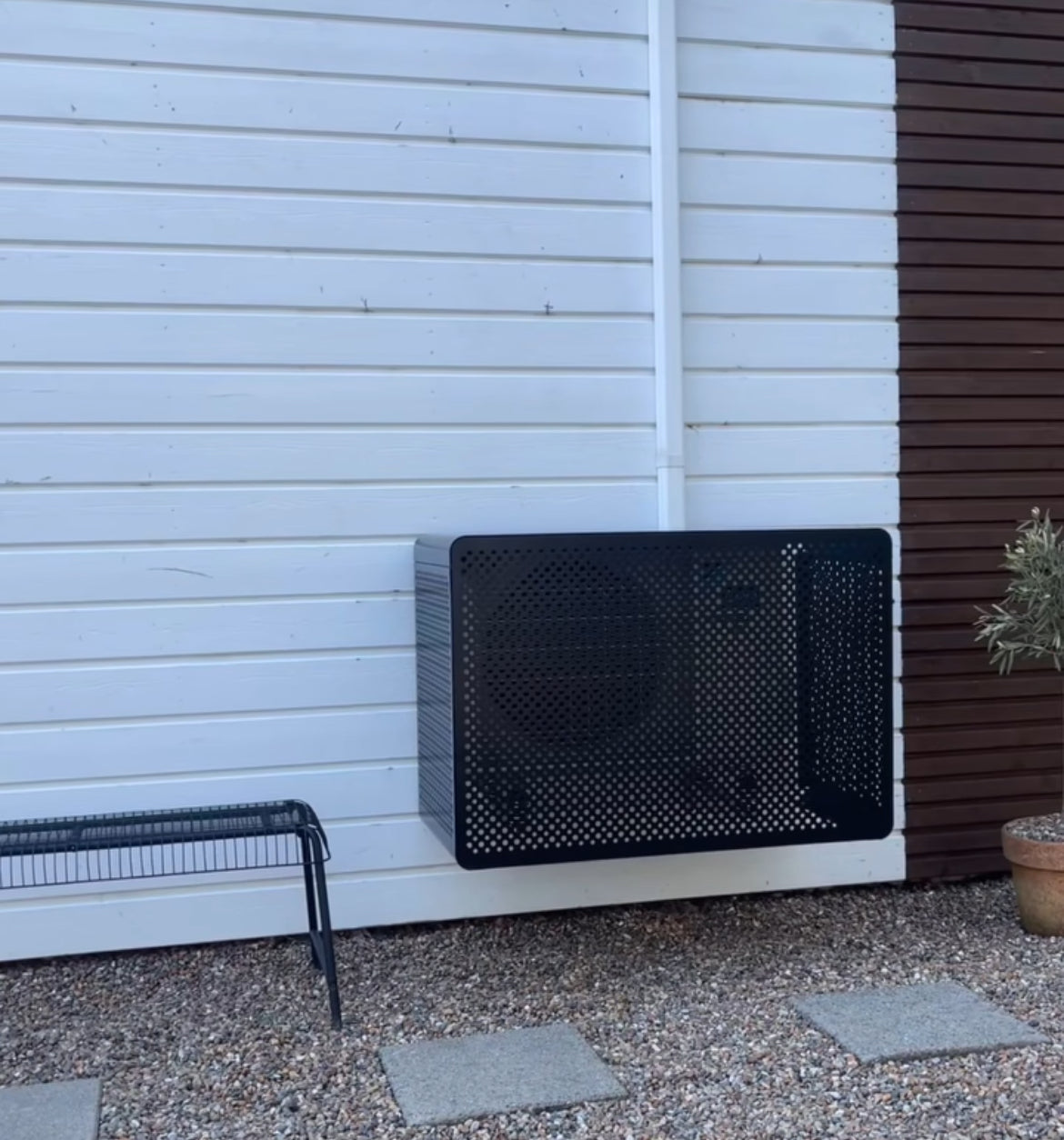Vores varmepumpedæksel i aluminium giver din installation et attraktivt udseende. De afrundede hjørner giver et blødt og moderne udtryk og egner sig til både klassisk og moderne arkitektur.